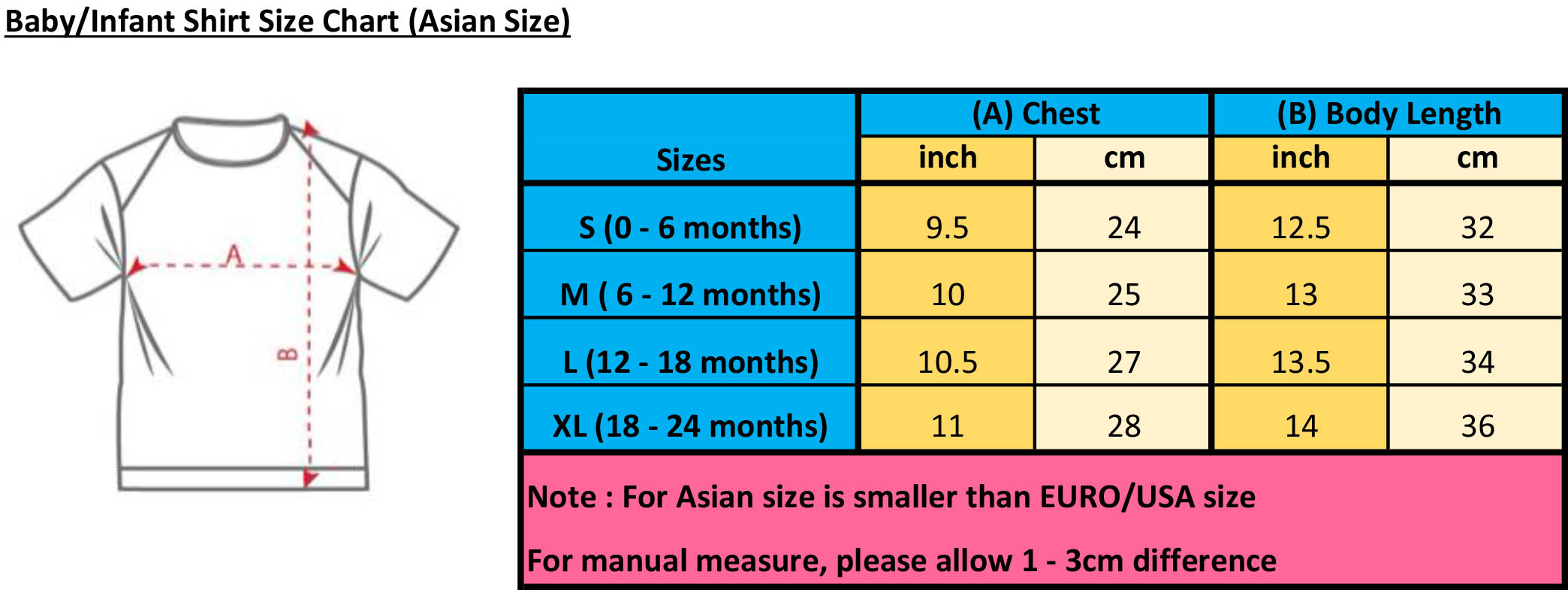 Size Kids : age 1 to age 12